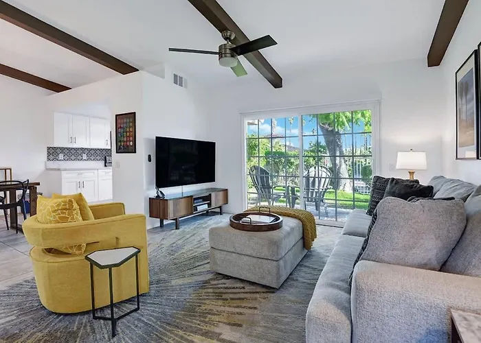 Het hart van Palm Springs kan worden bereikt in 20 minuten lopen van de 1-badkamer villa, en cultuurgerichte locaties zoals het Agua Caliente Cultural Museum liggen op 2 km verderop. Gasten kunnen een bezoek brengen aan Frances Stevens Park, op rijafstand van 10 minuten vanaf het vakantiehuis, of een kijkje nemen bij het Hondenspeeltuin van Palm Springs, op 15 minuten rijafstand. De gesitueerde in Palm Springs Mesquite Bungalow Bliss - Alice Lodging bevindt zich op een klein stukje lopen van Saint Theresas Roman Catholic Church en is een populaire bestemming voor zowel gelovigen als toeristen.